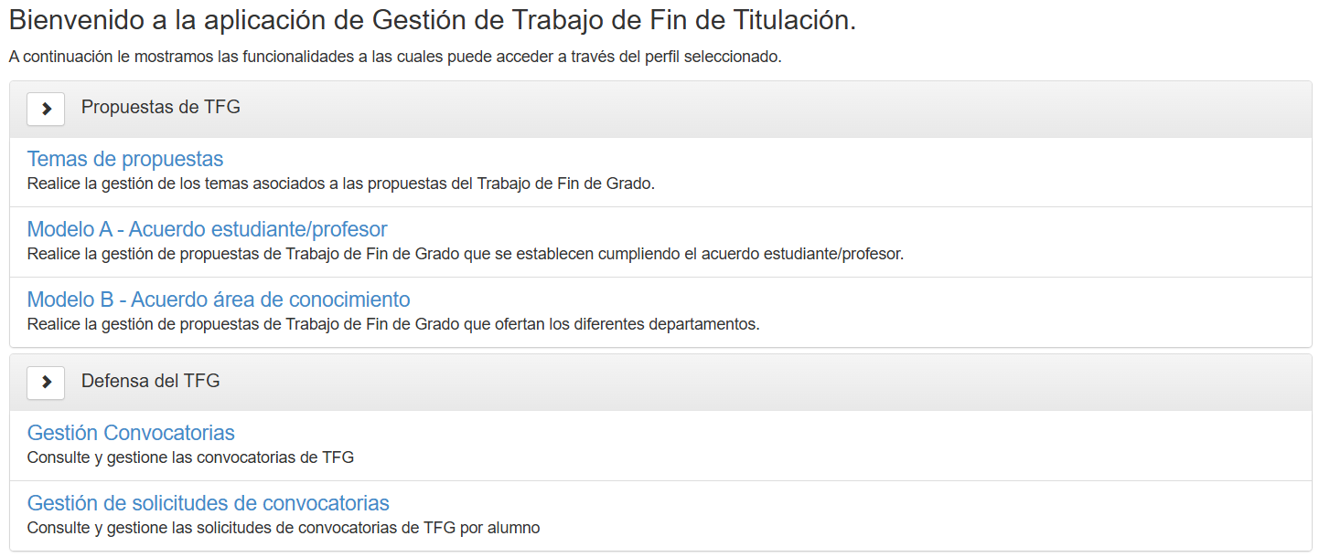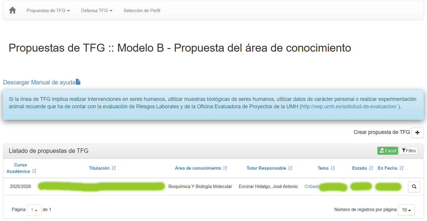 Desde nuestro acceso personalizado en la web de la UMH, dispondremos facilmente al enlace de Gestión del Trabajo de Fin de Grado.