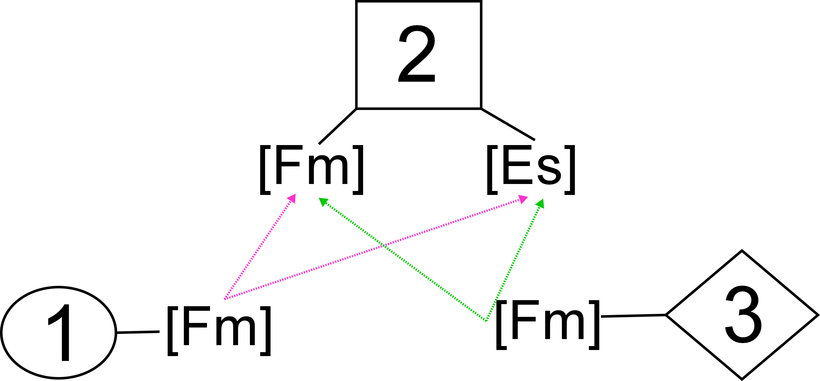 # OPCIÓN A: F1-[Fm] + F2-[Fm] -> Intermedio-[Es] + F3-[Es]